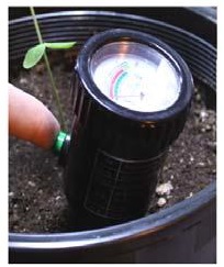 Для проведения измерений опустите pH-метр в исследуемую почву. Металлическая поверхность электрода должна полностью находиться в земле. Слегка утрамбуйте почву так, чтобы она плотно прилегала к поверхности металлического электрода прибора. Спустя 10 минут после погружения pH метра в почву на дисплее прибора отобразится значение уровня pH или влажности. Иногда прибор может показывать разные значения в зависимости от состояния почвы, плотности еѐ прилегания к металлической поверхности электрода, влажности и т.д. В связи с этим рекомендуется провести несколько измерений и применить среднее арифметическое значение. Нажмите на белую (или зеленую) кнопку для отображения значения влажности почвы.